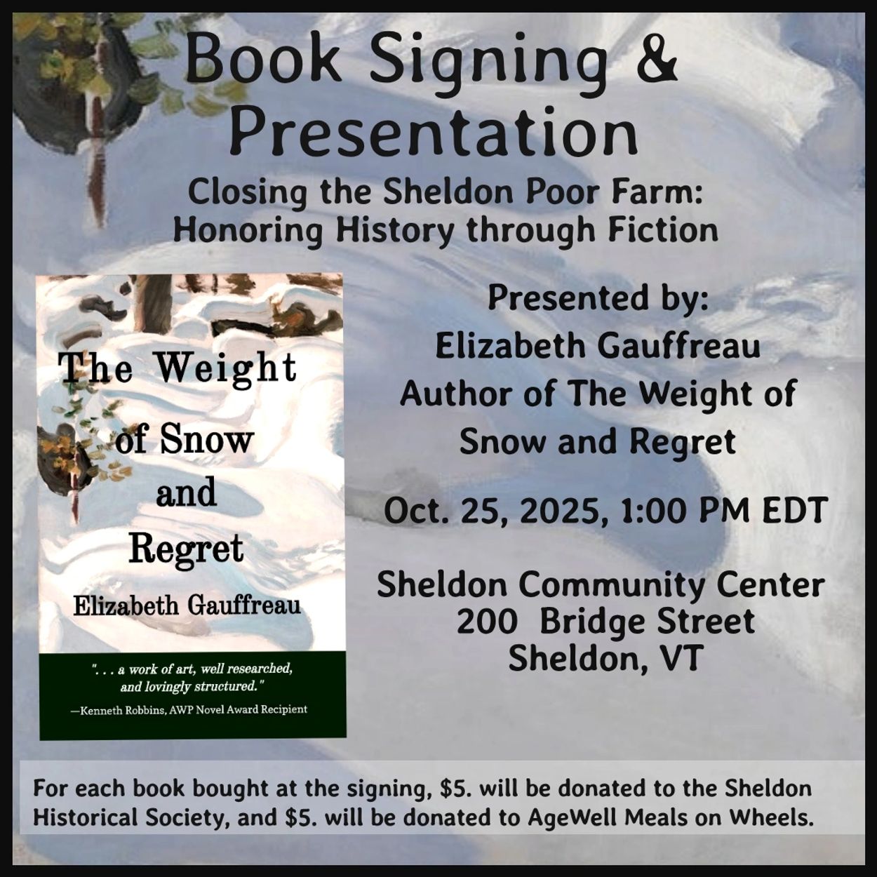 Order The Weight of Snow and Regret in paperback from Paul Stream Press, and $5.00 of the purchase price will be donated to AgeWell Meals on Wheels of Franklin County, Vermont. (United States Only, USPS Media Rate Shipping Included.)